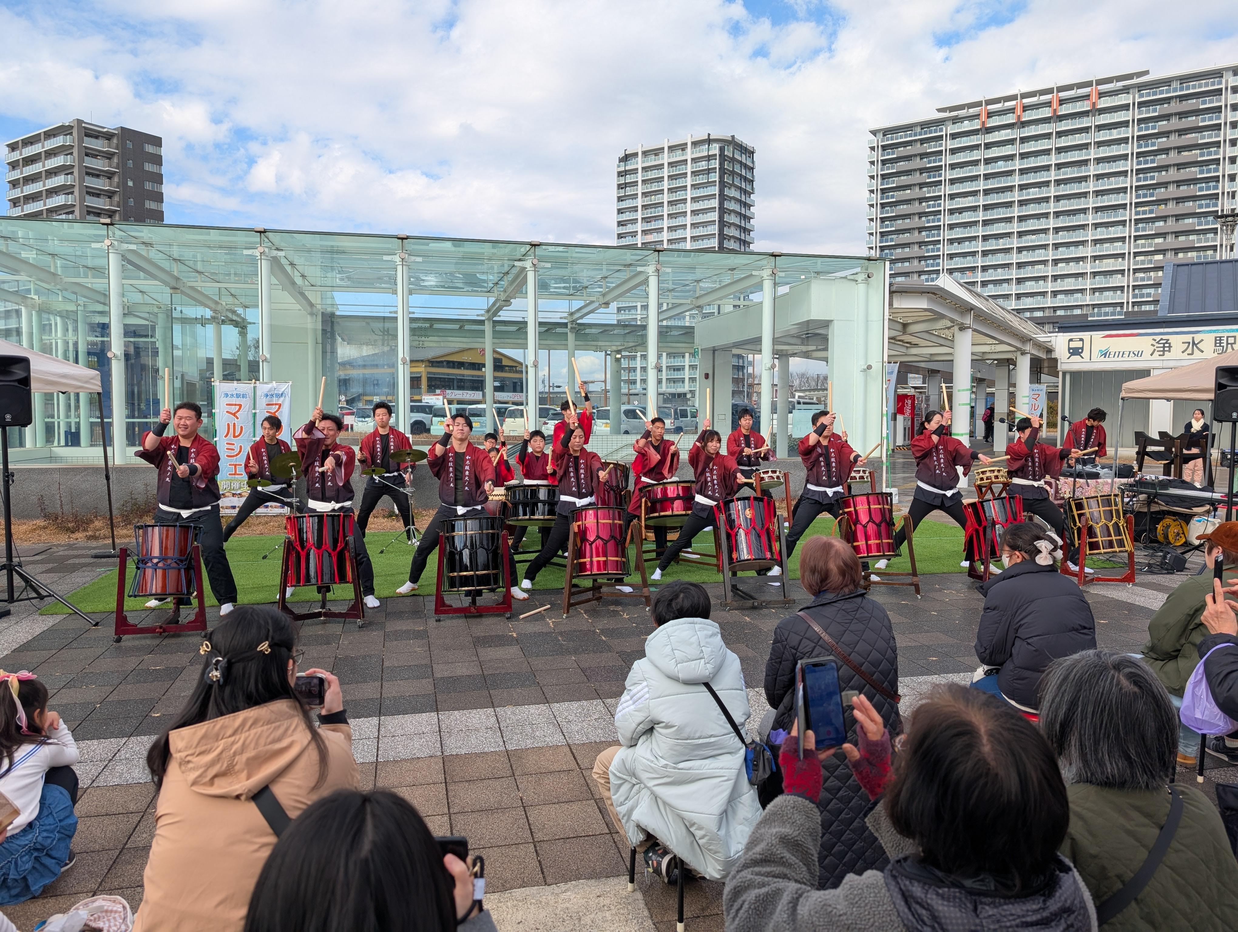 ![]() | 浄水駅前広場にてマルシェを行い、和太鼓や棒の手が披露されました。 多くの方にお越しいただき、おかげさまで大盛況でした。 |