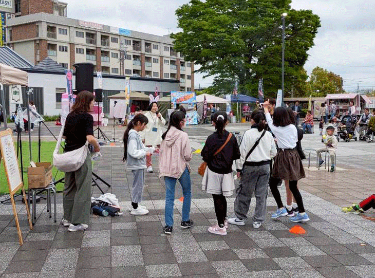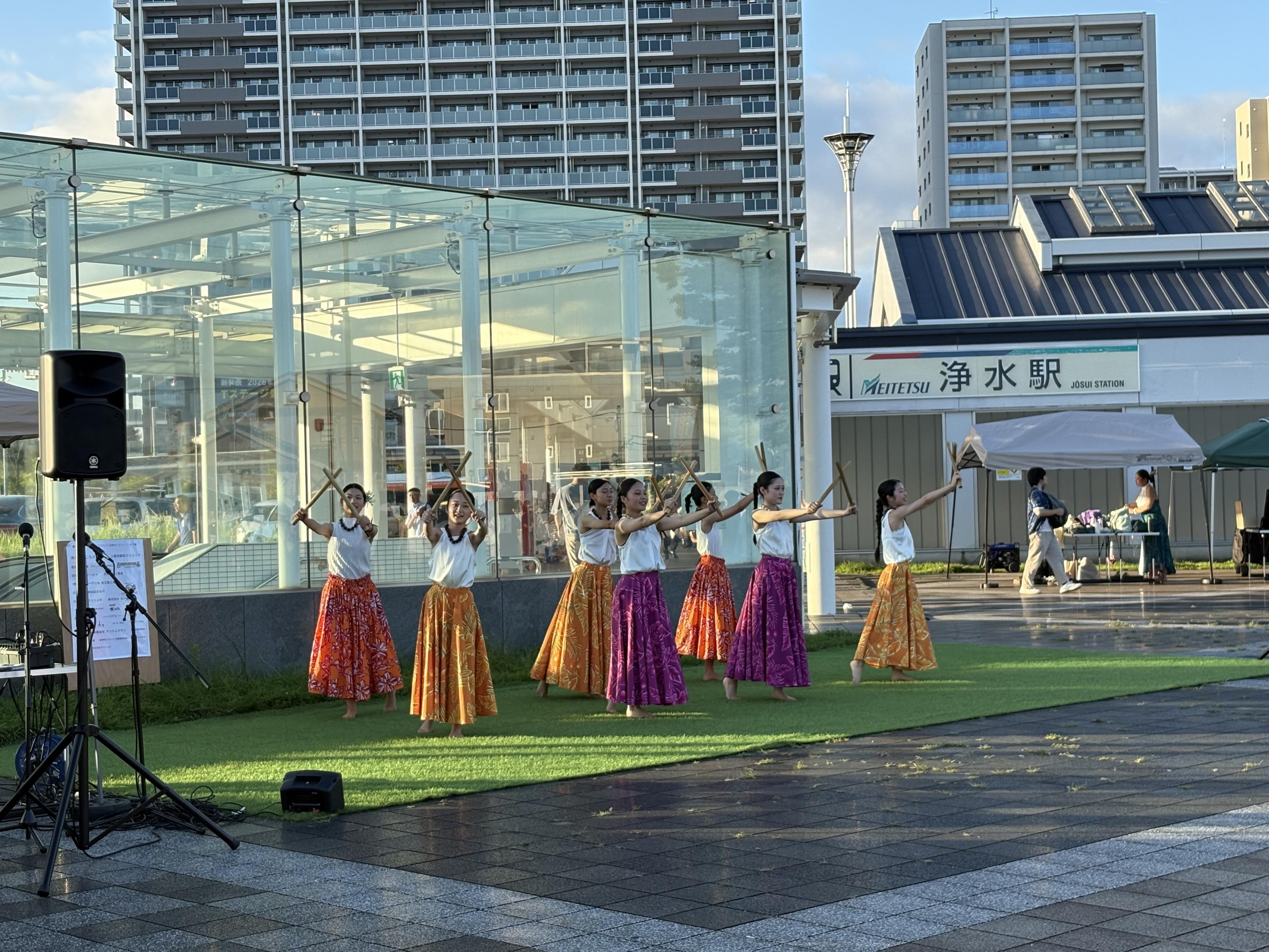 ![]() | 浄水駅前広場にてマルシェを行いました。 子どもが販売し子どもが買うキッズフリマや、中学生が子どもたちに輪投げを企画した子ども縁日が行われました。 ステージではキッズから高校生・大学生までダンスを披露してくれて盛り上がりました。 |
