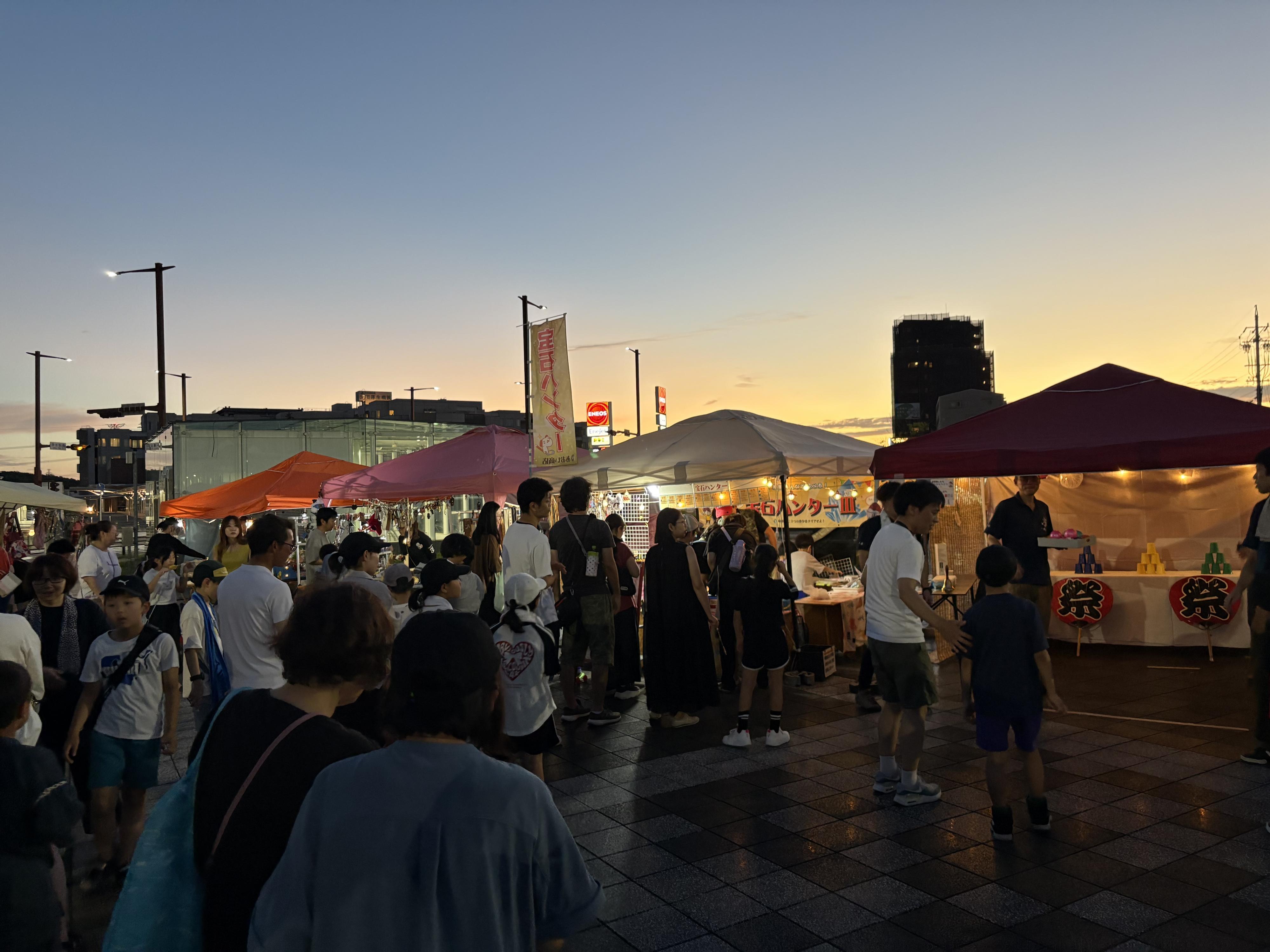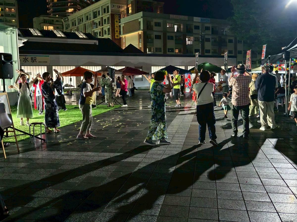![]() | 8月も夕方からマルシェを開催しました。 高校生ボランティアの皆さんによるゲームコーナーは、子どもたちで大賑わいでした。 ダンスあり歌ありのステージのファイナルは総踊り。おなじみ平成浄水音頭や炭坑節など、夏の終わりを名残惜しむように輪になって楽しみました。 |