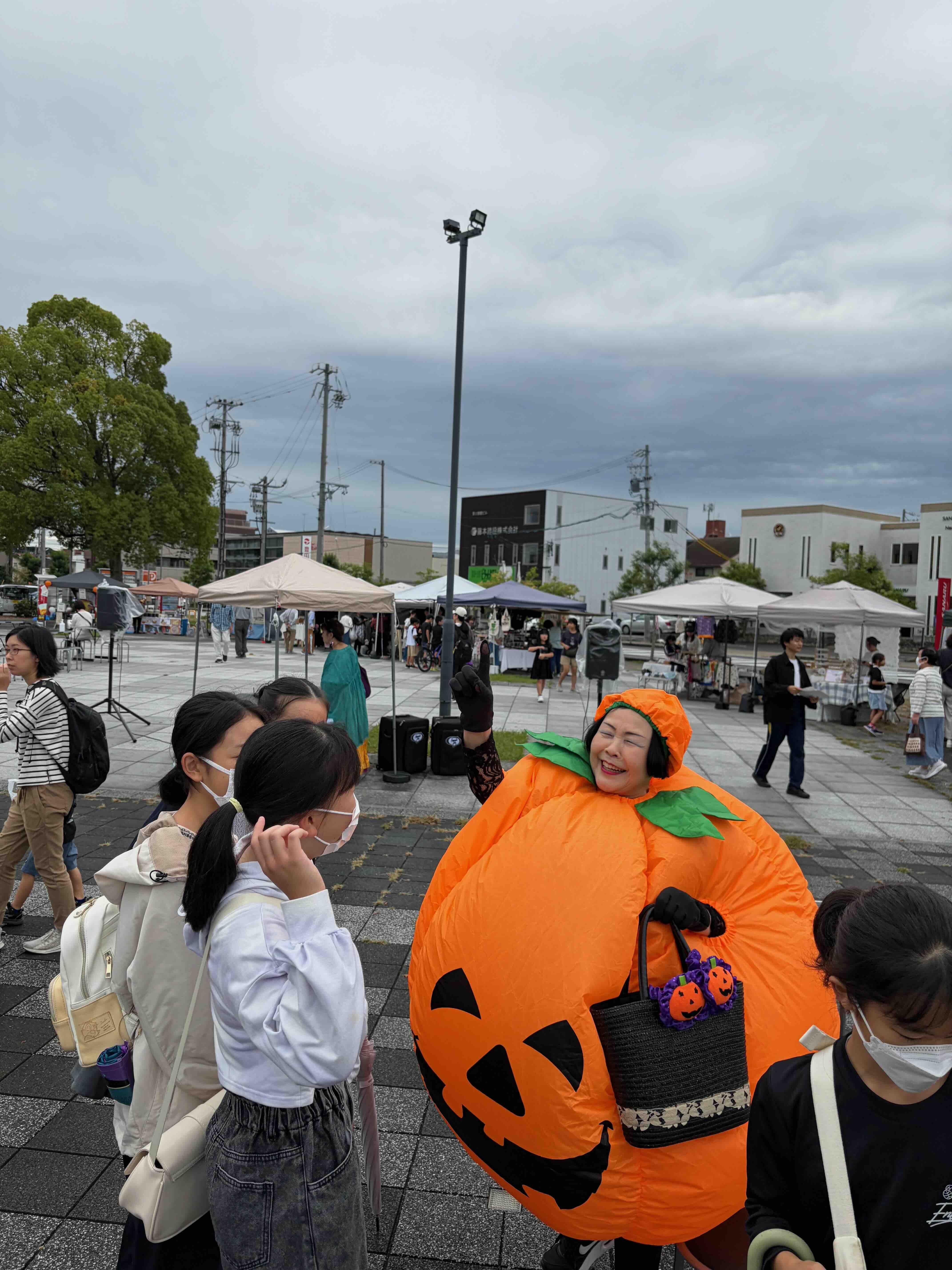 ![]() | 10月は、ハロウインマルシェを実施しました。 子どもたちがたくさん来場し、「Trick or Treat」 の合言葉を言いながら、かぼちゃに仮装したお姉さんからお菓子をもらっていました。 おとなも子どもも、仮装して楽しんでいました。 |